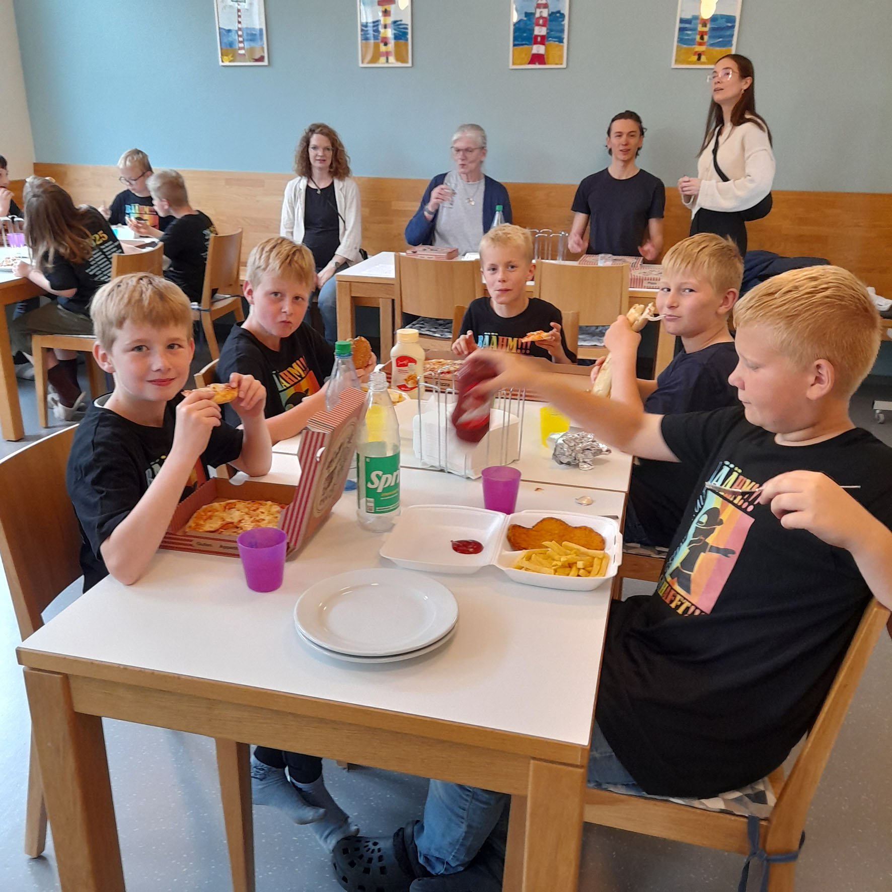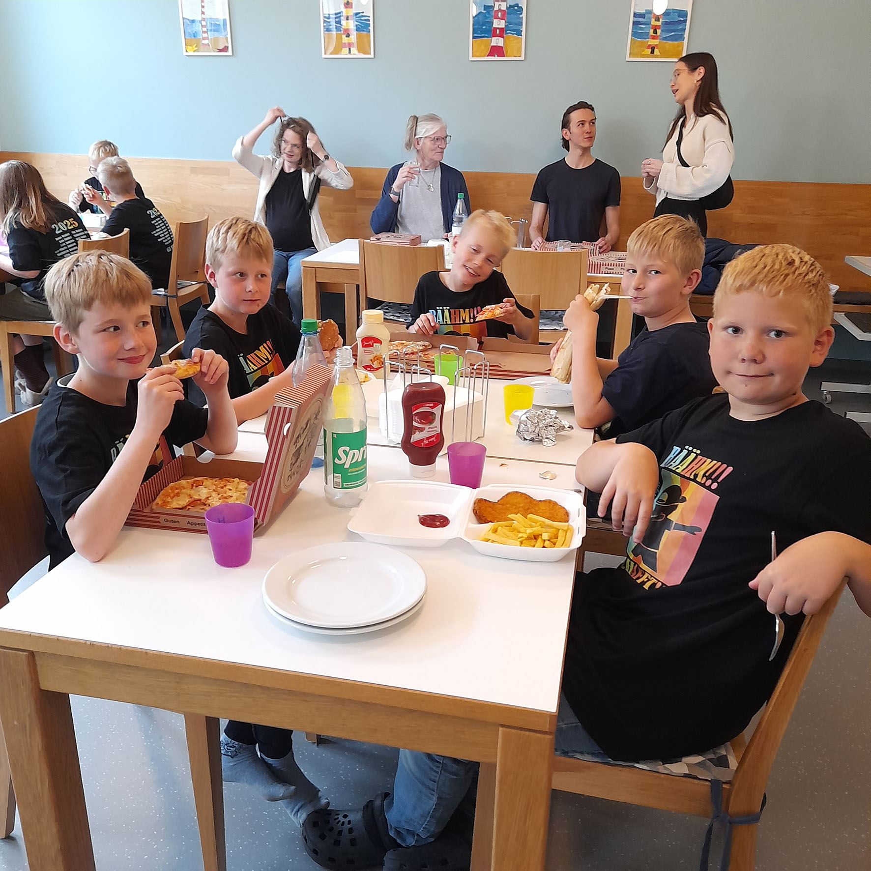 Am 26. Juni feiern die Viertklässler ein Abschlussfest mit lustigen Spielen, dem Fim „Gespensterjäger“, gemeinsamem Essen und Übernachtung in der Schule. Das Fest endet mit einem Frühstück am Freitagmorgen, das von den Eltern der Klasse 4 vorbereitet wurde. Vielen Dank dafür!