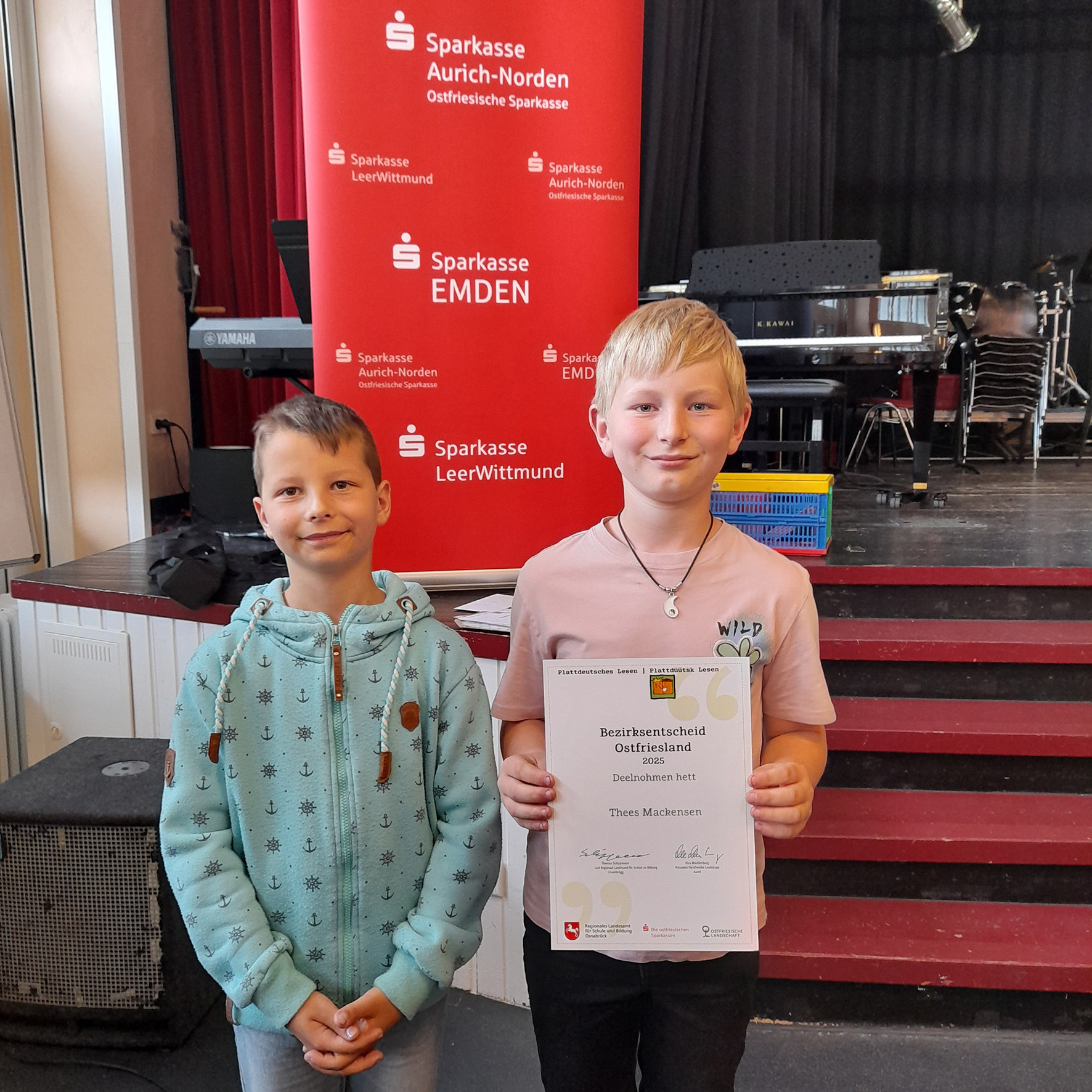 Bezirksentscheid Plattd. Lesewettbewerb Zwei unserer Schüler nehmen am Bezirksentscheid des Plattdeutschen Lesewettbewerbs im Teletta-Groß-Gymnasium in Leer teil. Tolle Leistung!