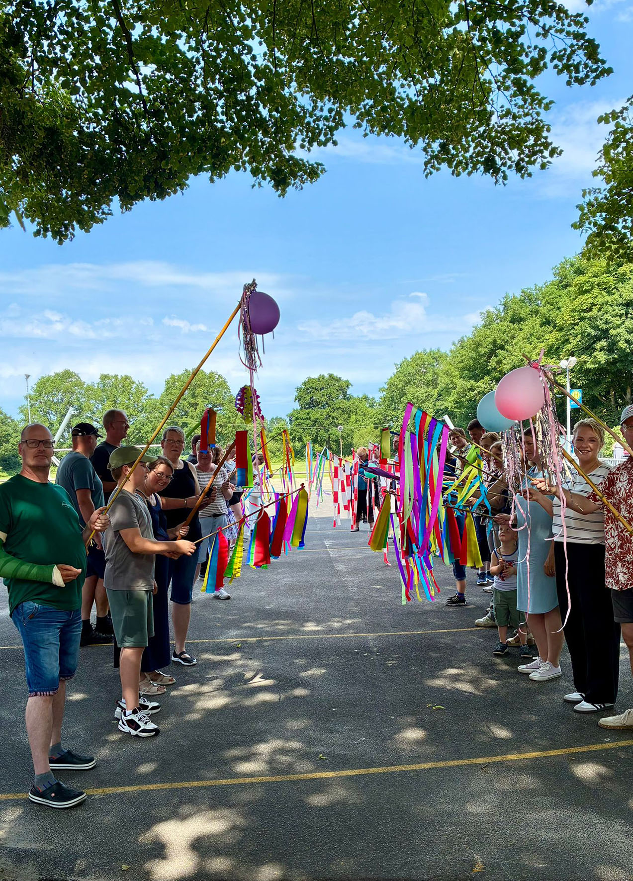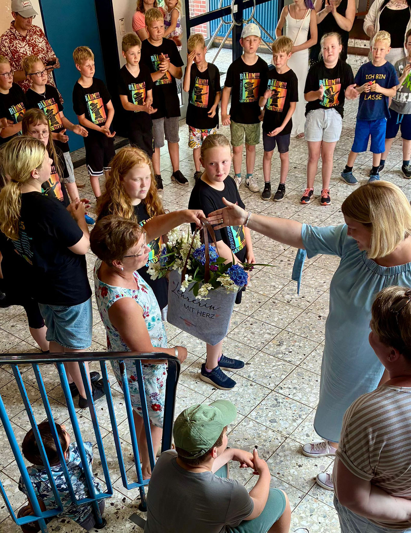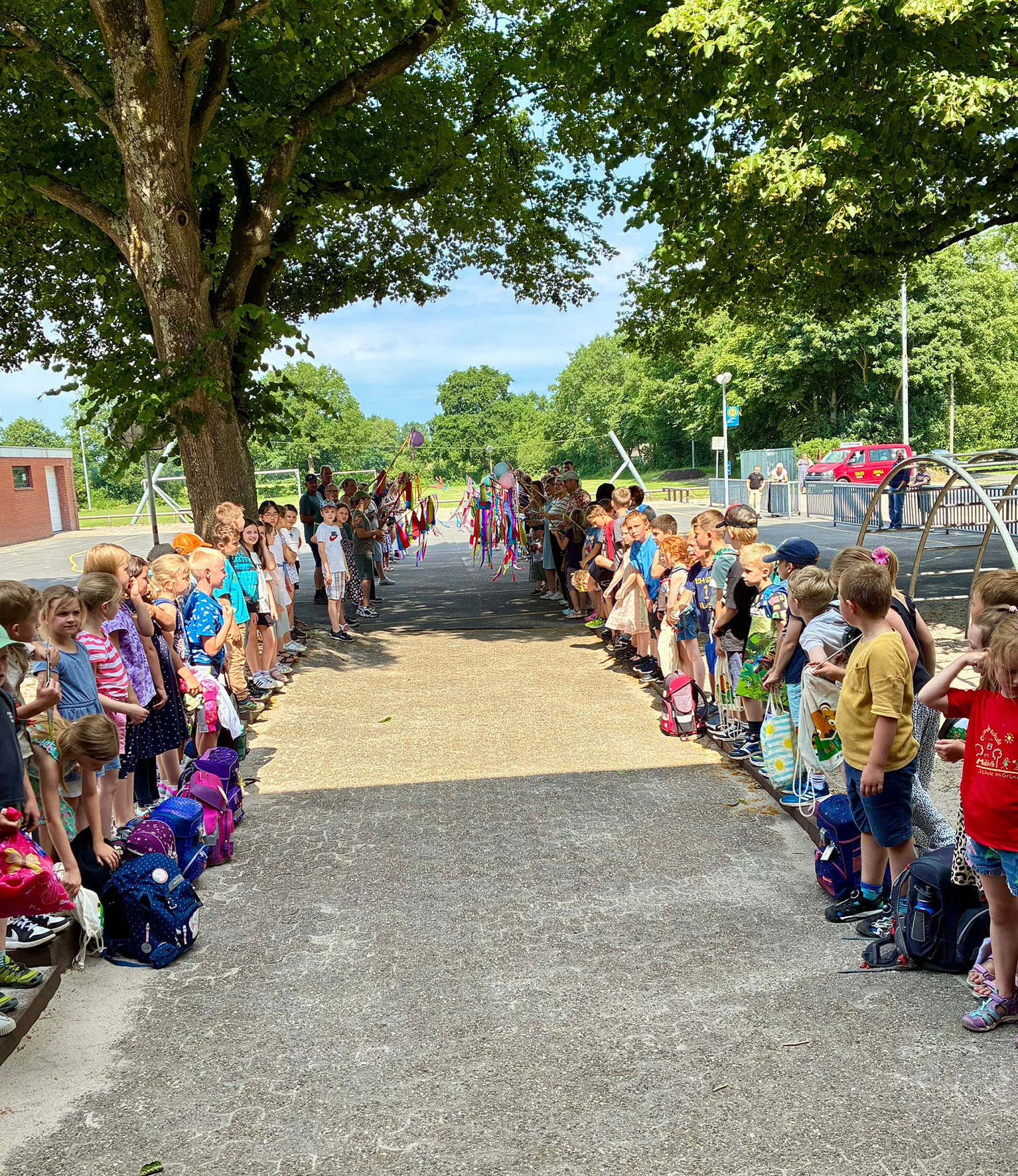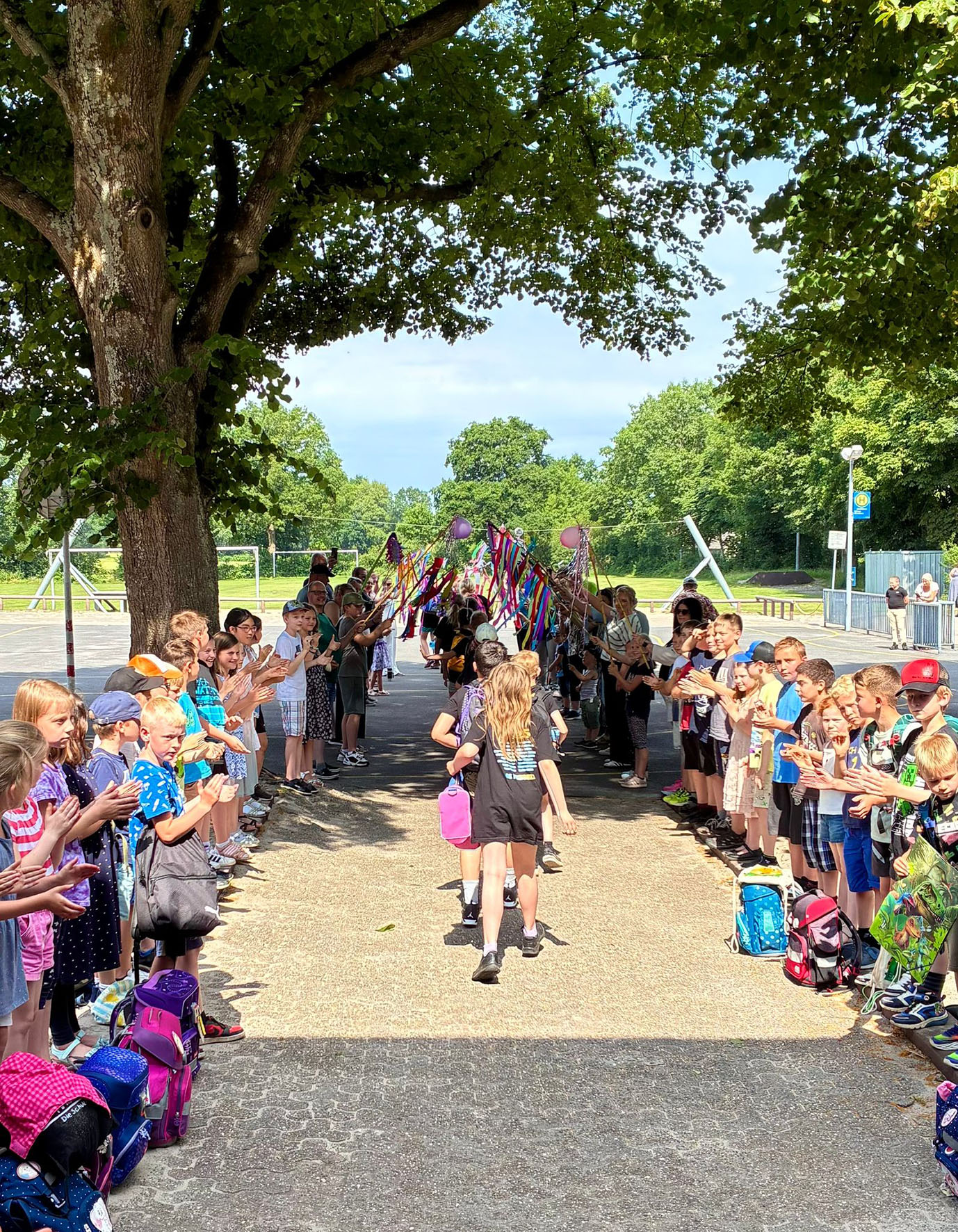 Letzter Schultag Am letzten Schultag laufen die Kinder der 4. Klasse durch ein langes Spalier aller Schulkinder und Eltern der Viertklässler. Danach gibt es noch einen Abschied mit endgültiger Entlassung der Kinder in der Pausenhalle.