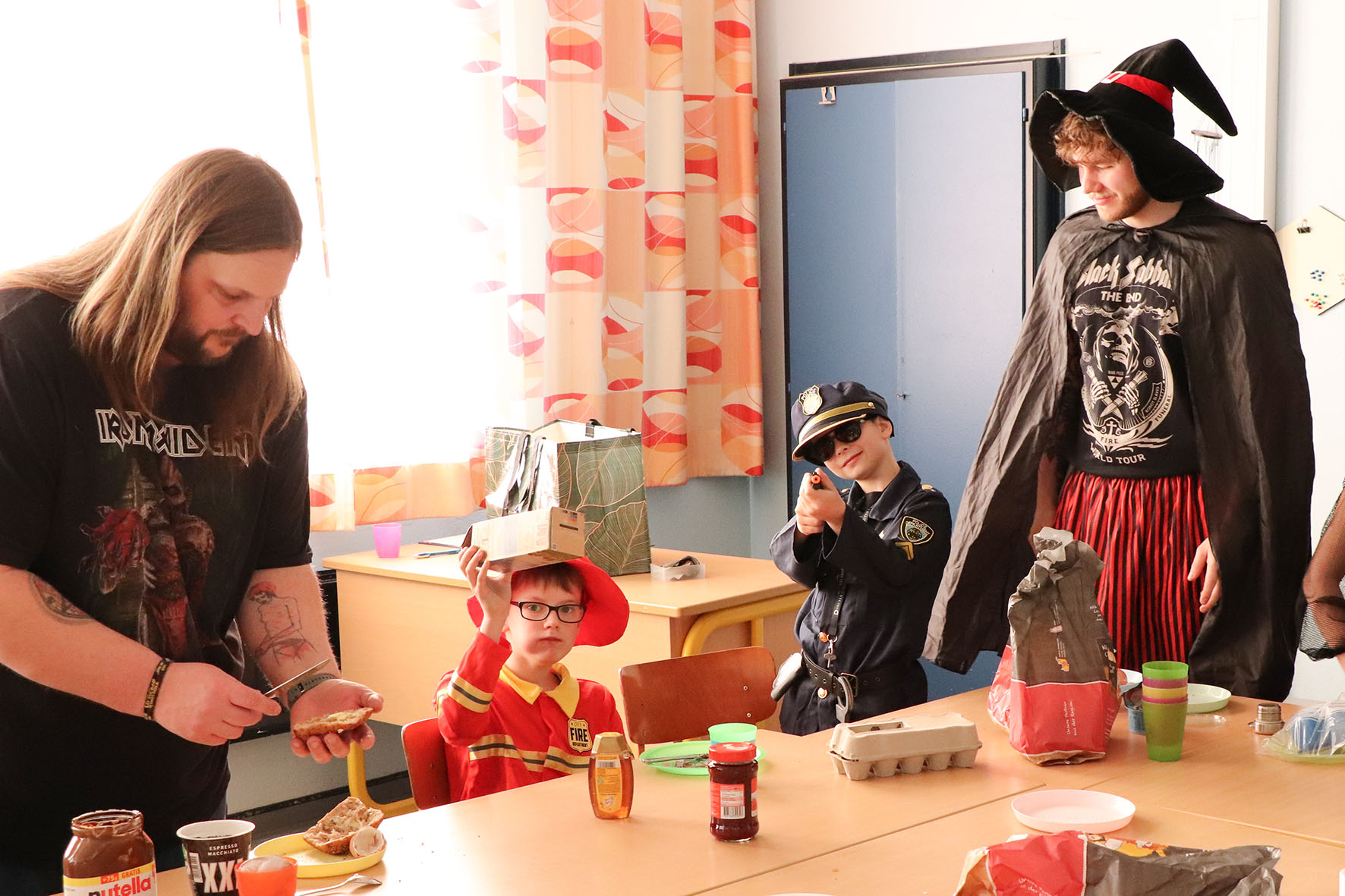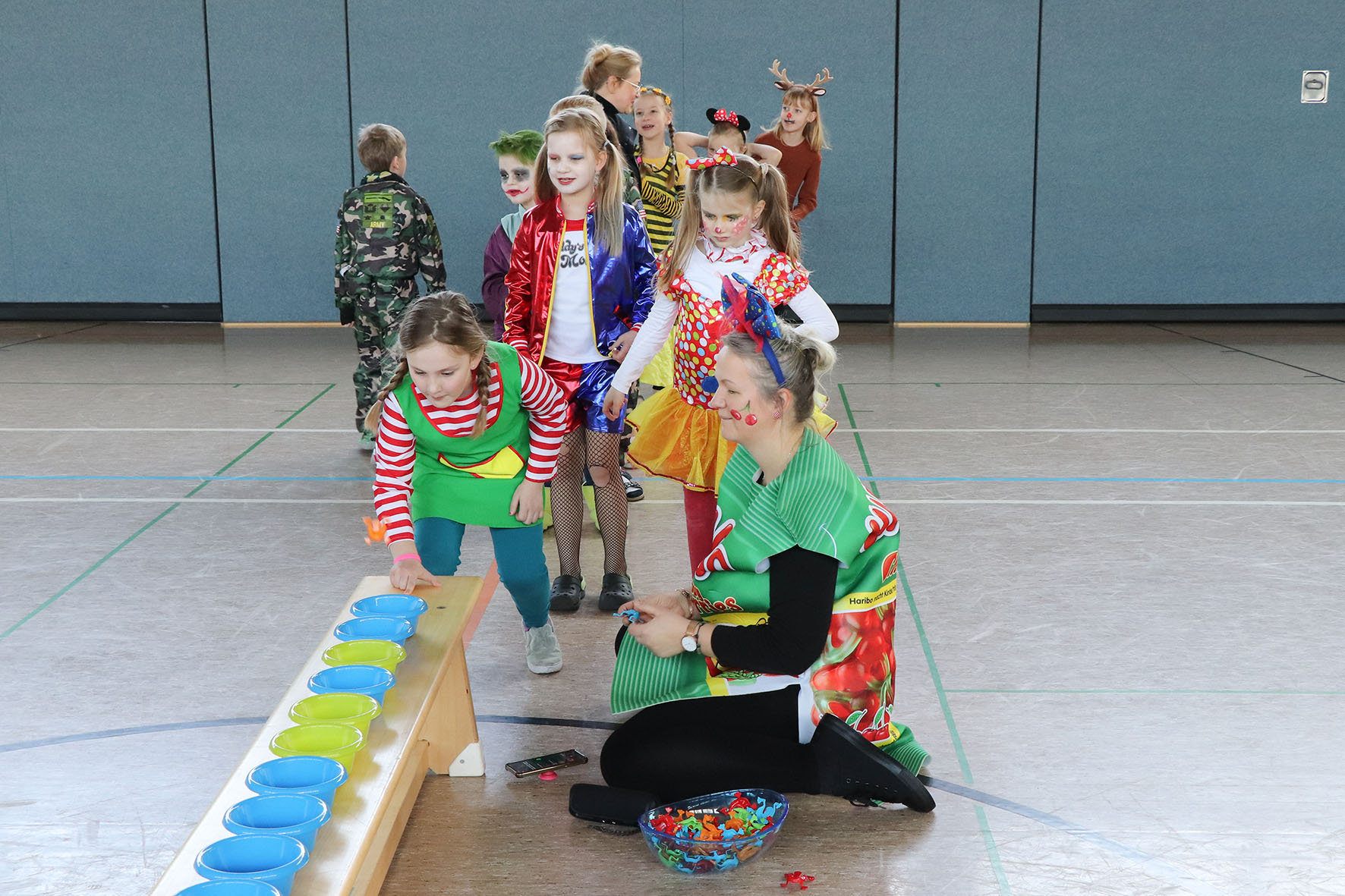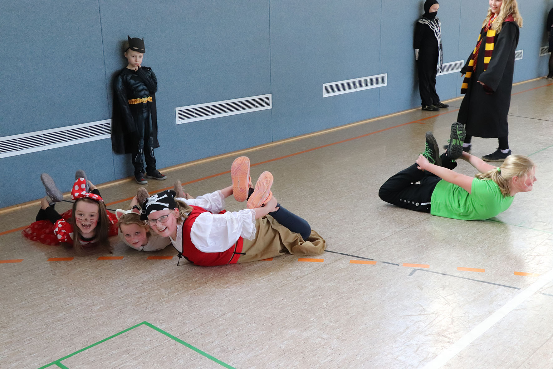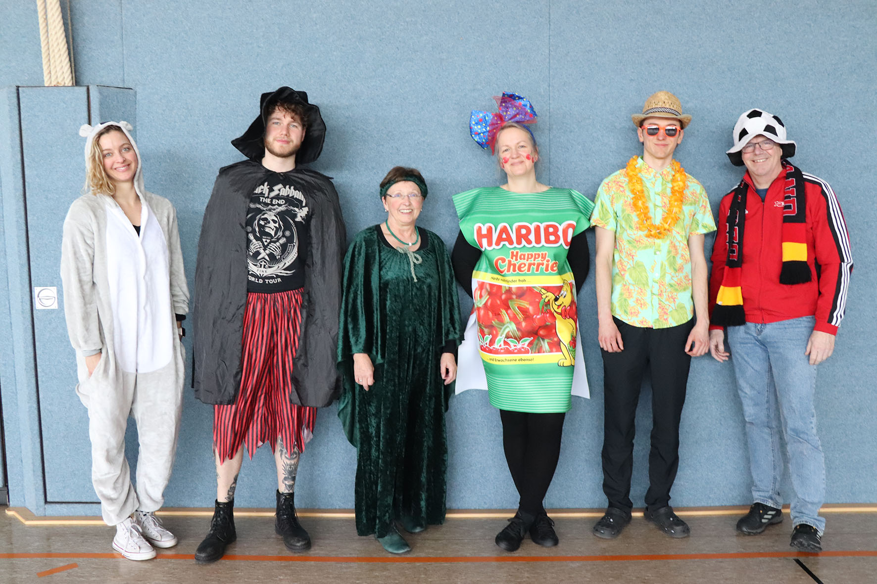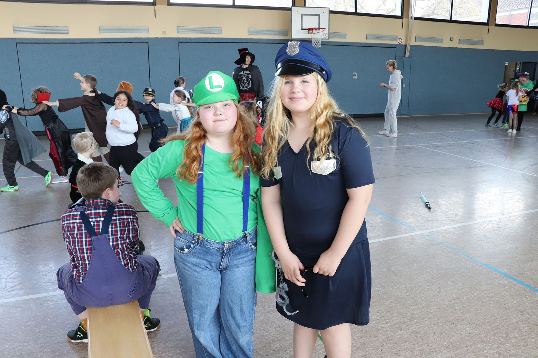 Alle kommen verkleidet zur Schule und feiern den ganzen Vormittag Karneval.
